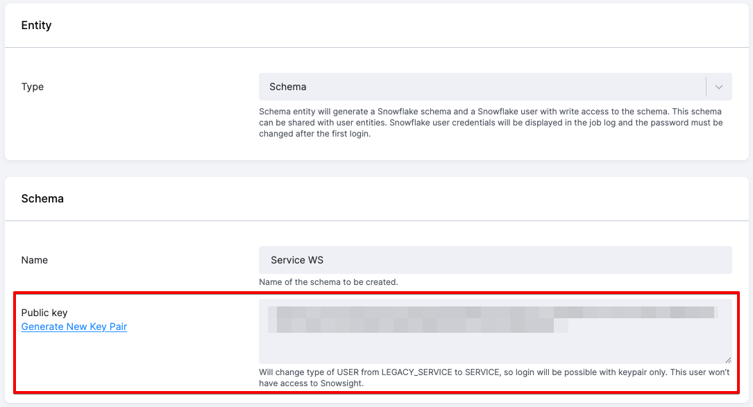 Public keyfield (either by generating a Key Pair in the UI or by creating your own),- an existing schema user is migrated from the