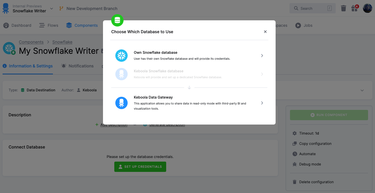 Snowflake Writer: Removal of “Keboola Snowflake Database” Destination Option