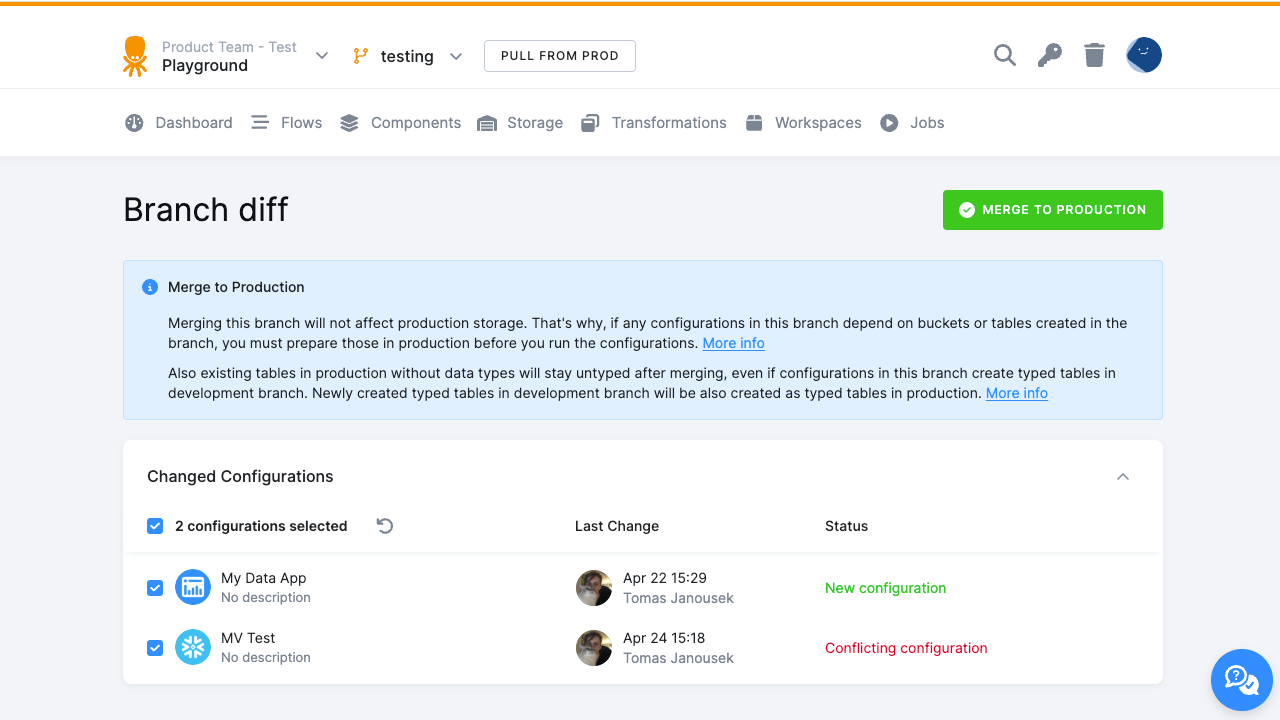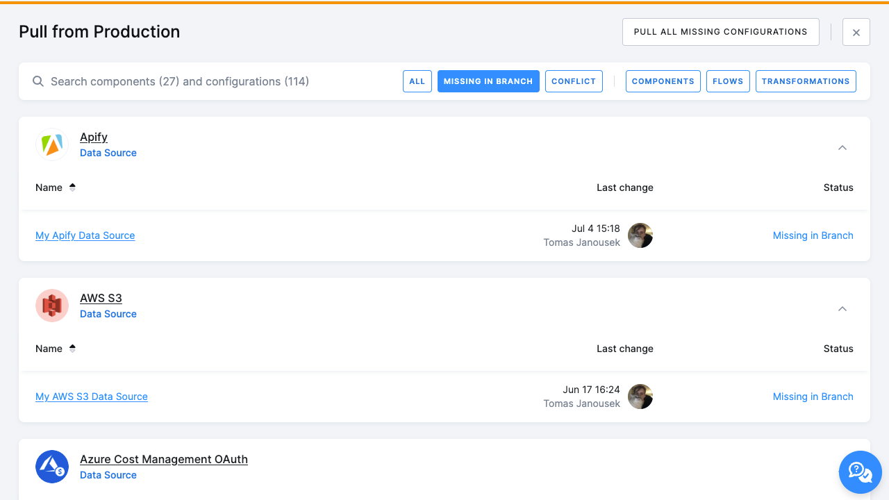 - Configurations changed only in production are excluded—diff view now focuses on branch modifications.