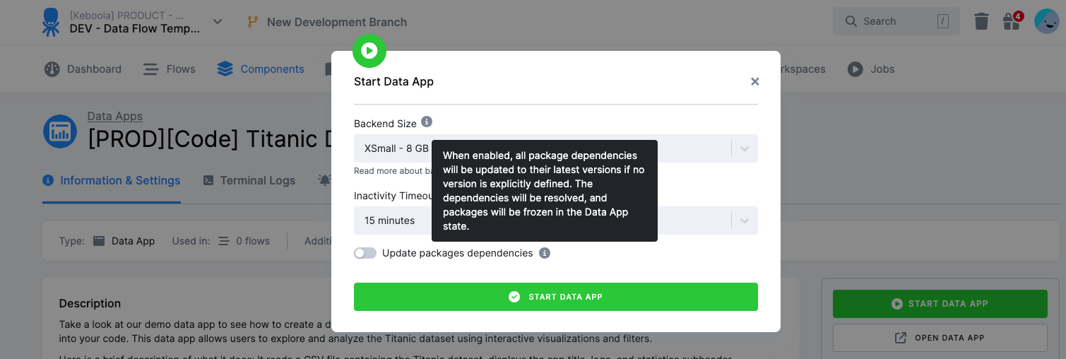 We’ve added the Freeze Version option in Data Apps, allowing you to lock Python package versions for stability.
