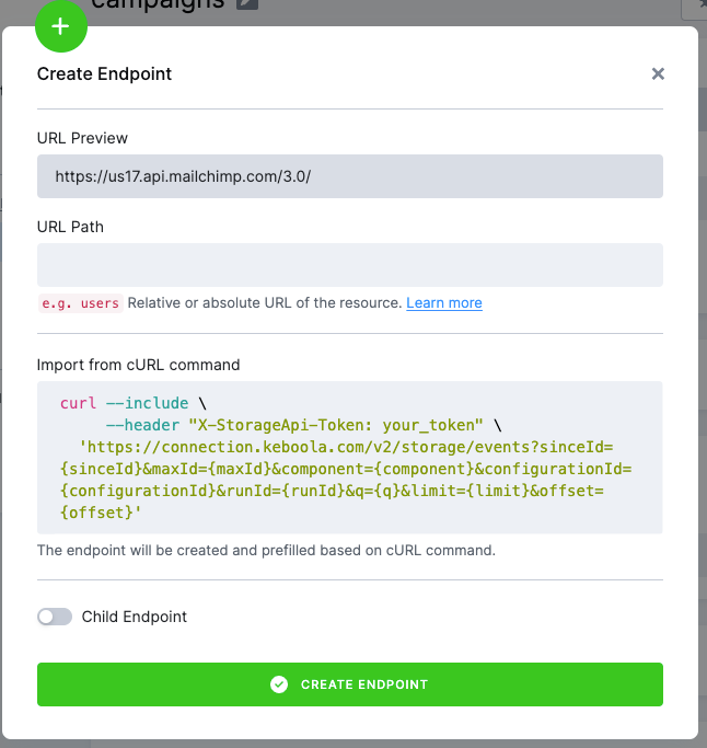 - cURL Import: Create endpoint configurations automatically from a cURL command.