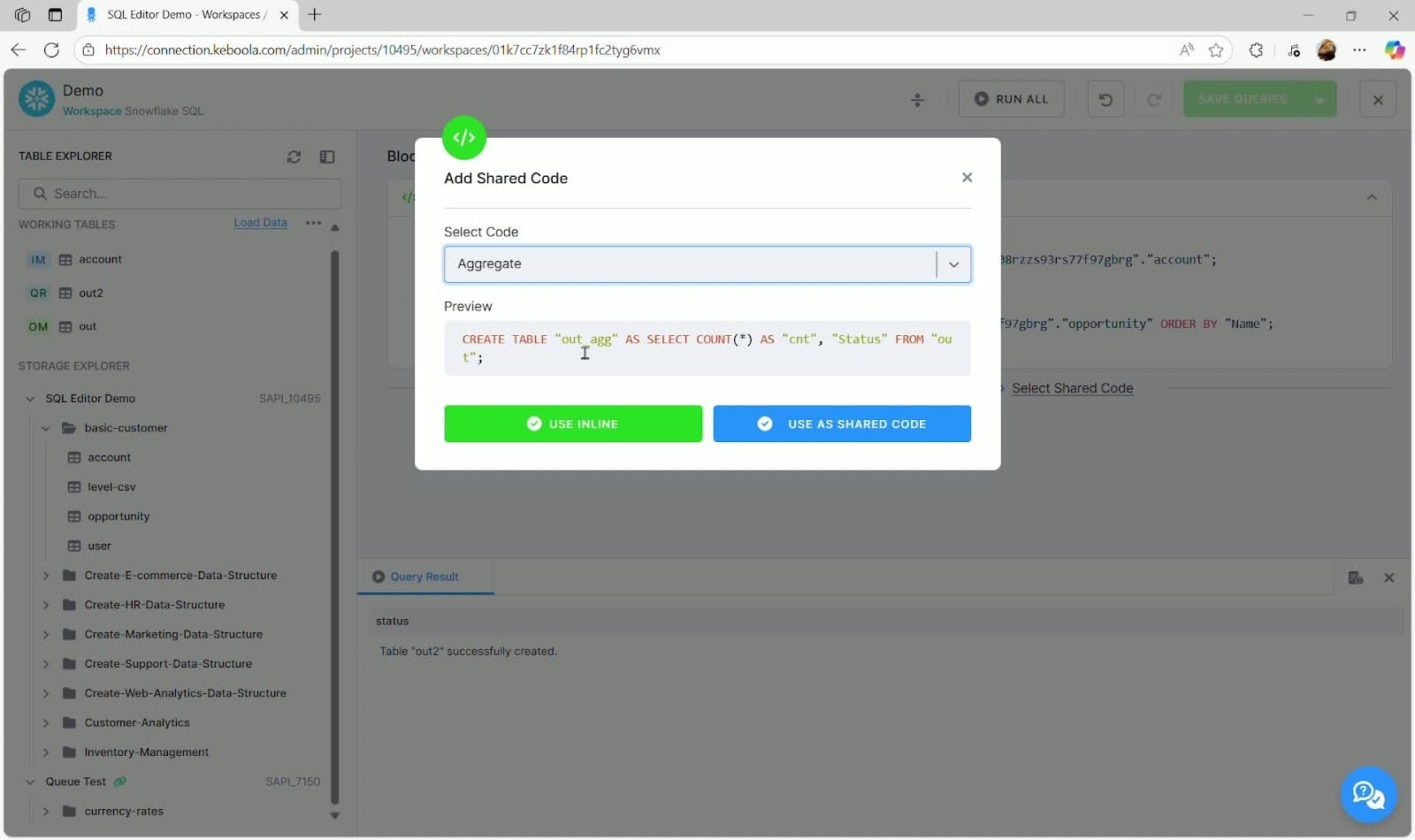 We’re excited to announce the public availability of the Keboola SQL Editor, a seamless way to interact with the Snowflake data warehouse directly within Keboola Connection.